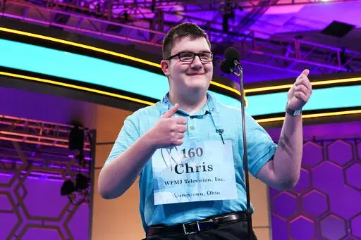 A reliable narrator, Chris didn't make it through the next spelling round. He was given “sirtaki” — a Greek dance — and said, “OK, I think I'm going to get out on this one.” And he did, after guessing the word started with a “c.”