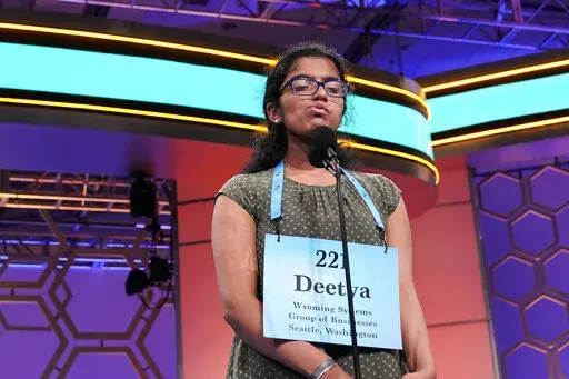 Walters' only pupil this year, four-time bee participant Harini Logan, made it through the vocabulary round and was one of a dozen finalists. She'll be joined on stage Thursday night by Sahasrad Satish, Ekansh Rastogi, Vikram Raju, Aliyah Alpert, Abhilash Patel, Sahana Srikath, Kirsten Santos, Nitya Kathiravan, Vihaan Sibal, Shijay Sivakumar and Saharsh Vuppala — Deetya's twin brother.