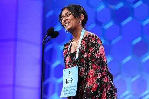 Harini, a 14-year-old from San Antonio, Texas, was one speller who kept her cool throughout, even when pronouncer Jacques Bailly made a rare flub, initially leaving a syllable out of “quinquefoliolate,” the word that got her into the finals.