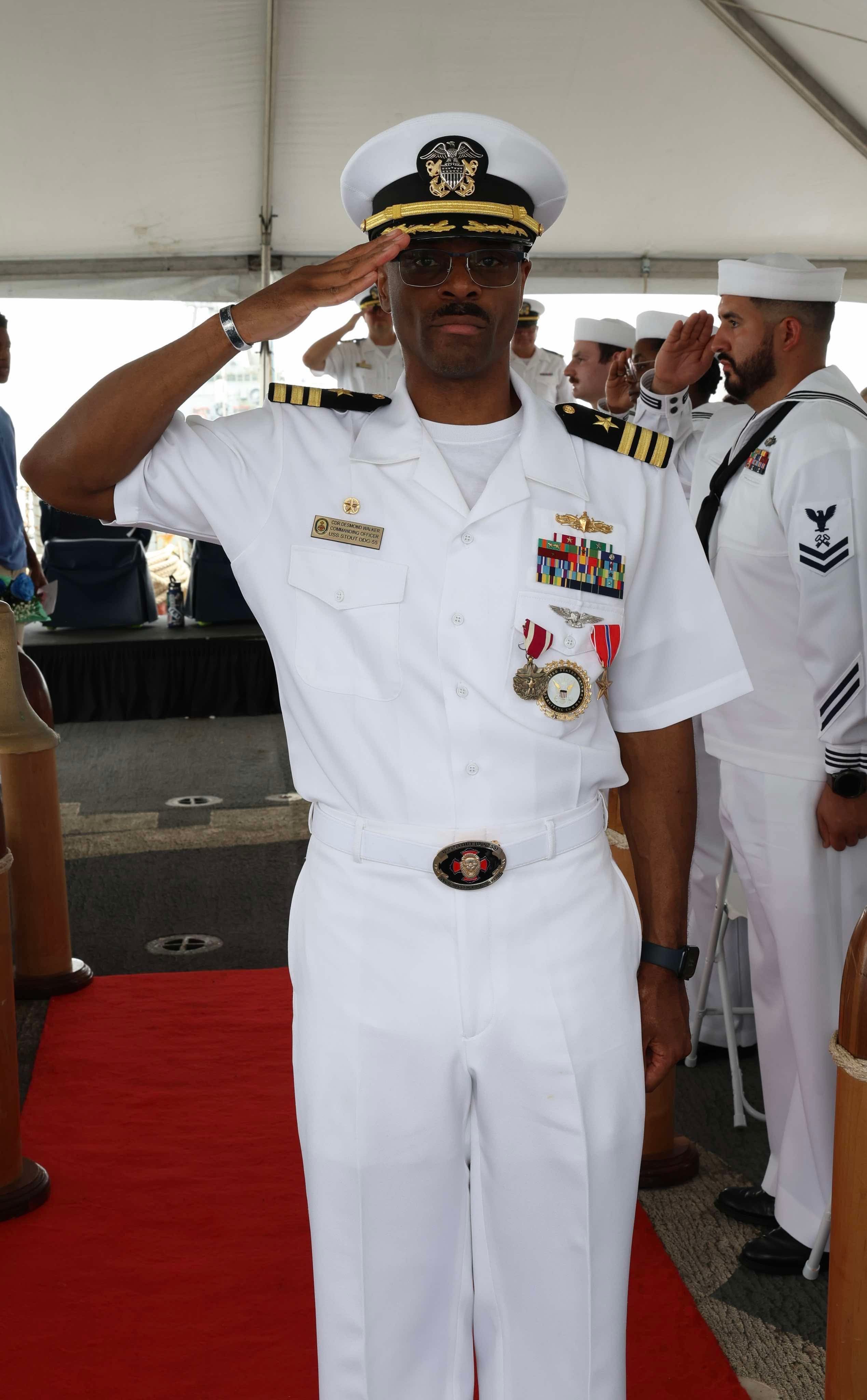 Cmdr. Desmond Walker, a native of Hollandale, Mississippi, recently completed a tour as commanding officer of USS Stout, a U.S. Navy warship operating out of Norfolk, Virginia.