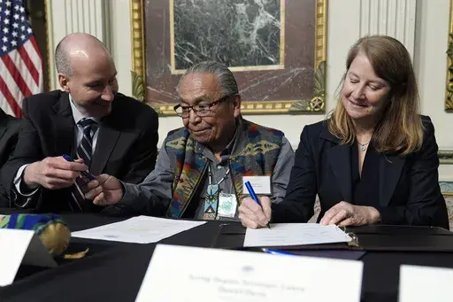 WASHINGTON (AP) — The Biden administration, leaders of four Columbia River Basin tribes and the governors of Oregon and Washington celebrated on Friday as they signed papers formally launching a $1 billion plan to help recover depleted salmon populations in the Pacific Northwest.