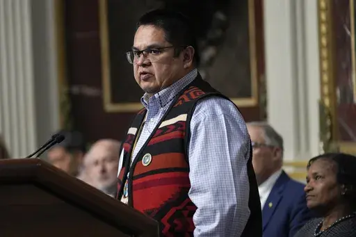 Lewis was among four tribal leaders who spoke at the hourlong ceremony at the White House complex, along with Washington Gov. Jay Inslee, Oregon Gov. Tina Kotek and an array of federal officials.