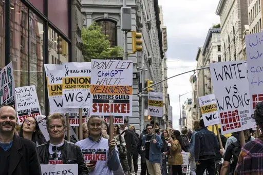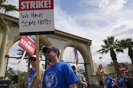 LOS ANGELES (AP) — Hollywood writers picketing to preserve pay and job security outside major studios and streamers braced for a long fight at the outset of a strike that immediately forced late-night shows into hiatus, put other productions on pause and had the entire industry slowing its roll.