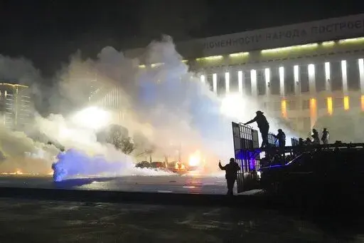 Over the course of a week, the initially peaceful gatherings grew violent. Participants in the marches told The Associated Press at the time that armed men, their faces covered and riding with cars without license plates, appeared in Almaty, the former capital, and urged them to storm government buildings, promising guns.