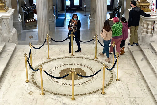 PROVIDENCE, R.I. (AP) — Rhode Island dropped “Providence Plantations” from its name a year ago, but not from its buildings.