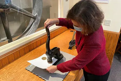 Secretary of State Nellie Gorbea is the keeper of the state seal, and has been using a new embosser to apply the redesigned state seal to official documents.