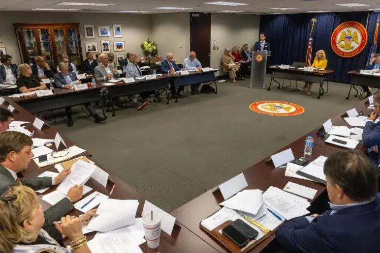 Joseph Scalfani, a member of the Mississippi Opioid Settlement Advisory Committee, discusses priorities during the council’s first meeting at the Walter Sillers Building in Jackson, Miss., on Wednesday, July 9, 2025. Credit: Eric Shelton/Mississippi Today