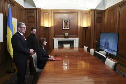 After the meeting, Britain announced it was extending a 2.26 billion pound ($2.84 billion) loan to Kyiv for military procurement, with the money coming from the profits on frozen Russian assets. It's Britain's contribution to a $50 billion package of support pledged by the G-7 group of wealthy industrialized nations.